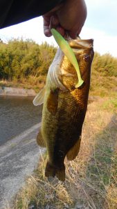 研修が17:00に終わって、どこに行こうか迷った挙句十市方面を目指す。池ではなく、昨日良かった十市川へ。風はかなり強く寒い。それでもドライブシャッドを付けてやる。フェンス沿い、何も無し。対岸藻だまりなにも無し。手前の岸際をテロテロと引いてきたらゴン!合わせると乗っていい引き。抜いてキャッチ成功。