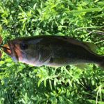 セカンド木陰、着水させると、スーーーっと近づく波、からのグン!ヒット&キャッチ。小さいけど嬉しい。久しぶりのバス。
