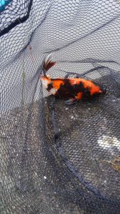 続いて、今度は小さめの赤金ドイツ鯉。