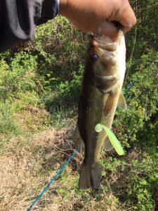 スロープの東側から始める。で、いきなりコン!ちっちゃいけど、釣れるじゃん!
