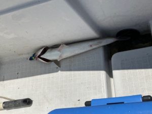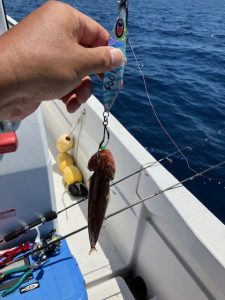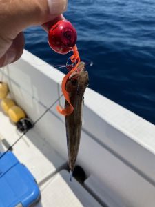水深は70m 今日はジグも100ℊまでしか持ってきておらず、やってみるもすぐに着底が不安定になり、今日持ってきてる一番重いビンビンスイッチ150ℊのヘッドにしてみる