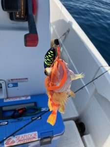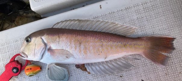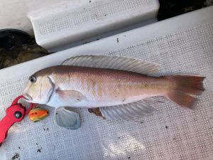 もしかしてアマダイと思いながら慎重に上げてきたら残り30mほどで強い引きも来てやり取りしながら上げてきたらやっぱりアマダイ、シロアマ