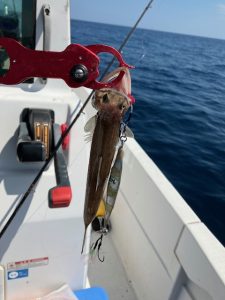 まさに真夏の釣り、沖は風があるとはいえ、熱中症に罹らないよう気を付けてやってました