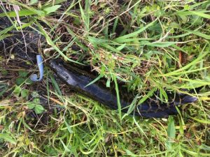 6月7日 朝一仕事して昼から出撃。この日は朝から(夜中から)大雨。なので、まずはシーバスでもと思い、放水口巡り。しかし反応なく、川裏の水路に。ココはバジンと決め打ち。水門は何もなく、岸沿いを打っていく。ありとあらゆる口から水が出ている。そこを中心にやっていくと、幾つ目か、放水にホースが絡んだ場所。その縁を通り過ぎてすぐにゴン!そんなにデカくないけど、巻きに来るゴンは格別。
