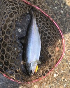 釣りに戻るも、反応は遠く、しばらくしてコツコツと来てから、小型イトヨリ。まぁ嬉しい。