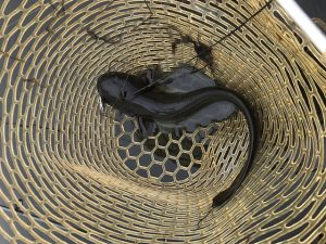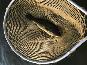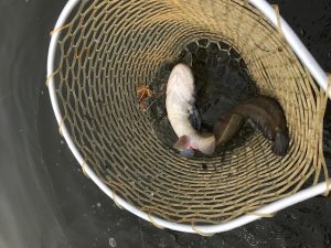 次沈、落として巻き始めたらコンコンコンからグ~~~で、さっきよりは全然弱いけど引きはある。上がってきたのはレンコ。