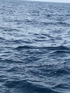 サバも2投で終わり、ふと沖を見ると、何かがボイルしてる。魚ではなくイルカっぽい。もしかしたらカツオかデカキハダかも…と見に行くことに全員文句なし。近づくとイルカ。小型船だけに群れの中まで入れた感じ。これはこれでラッキー。