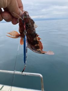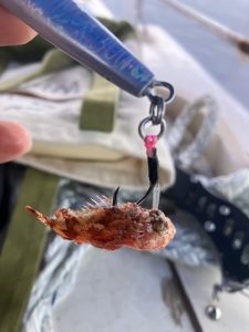 しばらくしゃくったものの反応あった?なし?で上げてきたら極小カサゴ?オニカサゴ?が