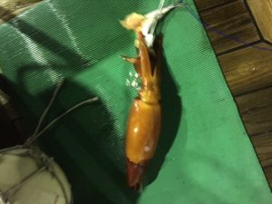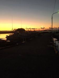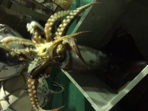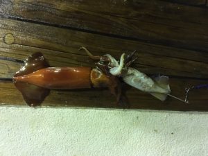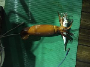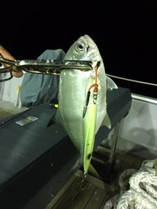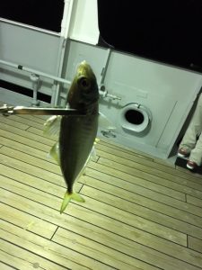 10月31日、高知港の沖に錨泊し、夜釣り。