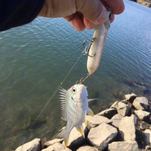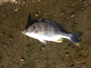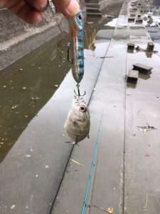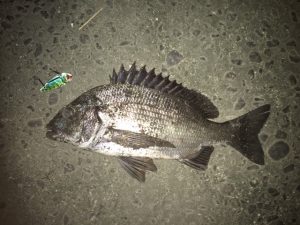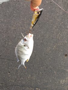 で、ぢばさん近くの池で、またバスして、浦戸湾でシーバス&チヌ狙い。チヌっぽいのが3回出て、1回触って終わり。